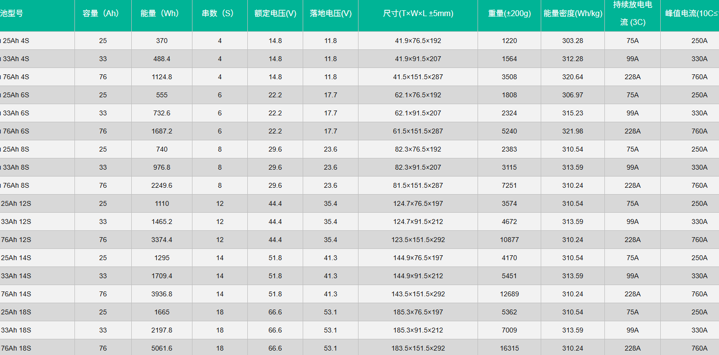 330Wh/kg Semi-Solid-State High-Specific-Energy Battery Series parameters: